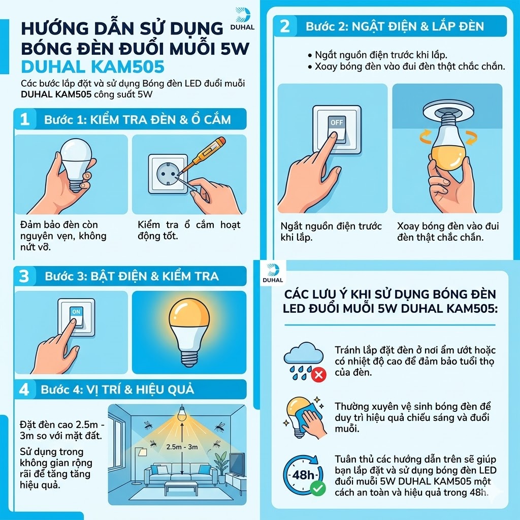 1. Thông tin kỹ thuật bóng đèn LED đuổi muỗi 5W DUHAL KAM505